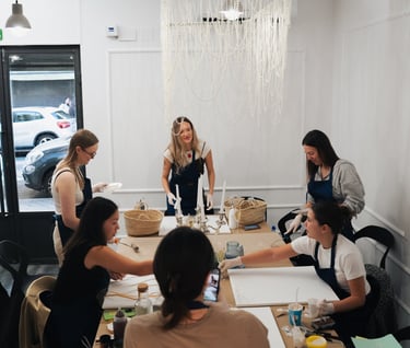 Creemos que la creatividad fluye mejor en buena compañía. Por eso, todas nuestras experiencias (con una duración de entre 2 y 3.5 horas) incluyen vino ilimitado y un ambiente cálido diseñado para que solo tengas que preocuparte de disfrutar.