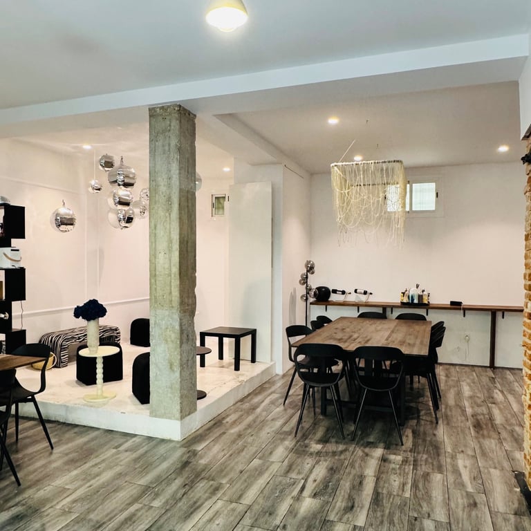 El estudio Inspirado Creative Studio en Madrid está preparado para grupos de hasta 20 personas, lo que lo convierte en un espacio ideal para talleres creativos, clases, formaciones y eventos pequeños en Madrid.